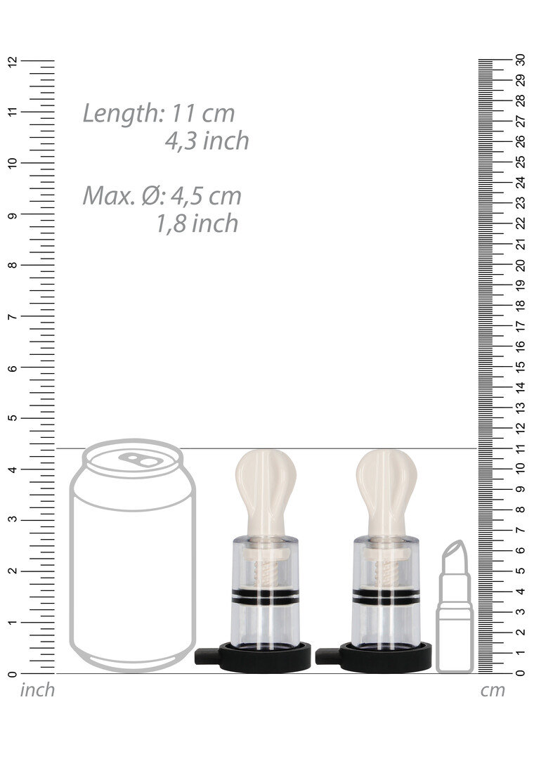 Combineer de opwinding en het genot die deze tepelvergroters creëren door de borsten te masseren of te cuppen en ze extra te stimuleren met elektriciteit! Deze ELECTRO SHOCK NIPPLE TWISTERS werken eenvoudig en zijn tegelijkertijd zeer effectief! Plaats de siliconen zuignappen over de tepels en draai de handgrepen handmatig om de cups te bevestigen. Verbind de Twisters met de meegeleverde afstandsbediening en je kunt de intensiteit van de pulsatie variëren van een zachte tinteling tot een harde kloppende sensatie! De ELECTRO SHOCK NIPPLE TWISTERS zijn gemaakt van massief hoogwaardig ABS, uitgevoerd in een wit/transparante kleur en worden geleverd als paar. De set is 11 cm lang, 4,5 cm hoog en 4,5 cm in diameter. Gebruik de E-Stim NIET met een hartafwijking of pacemaker zonder voorafgaand medisch advies.