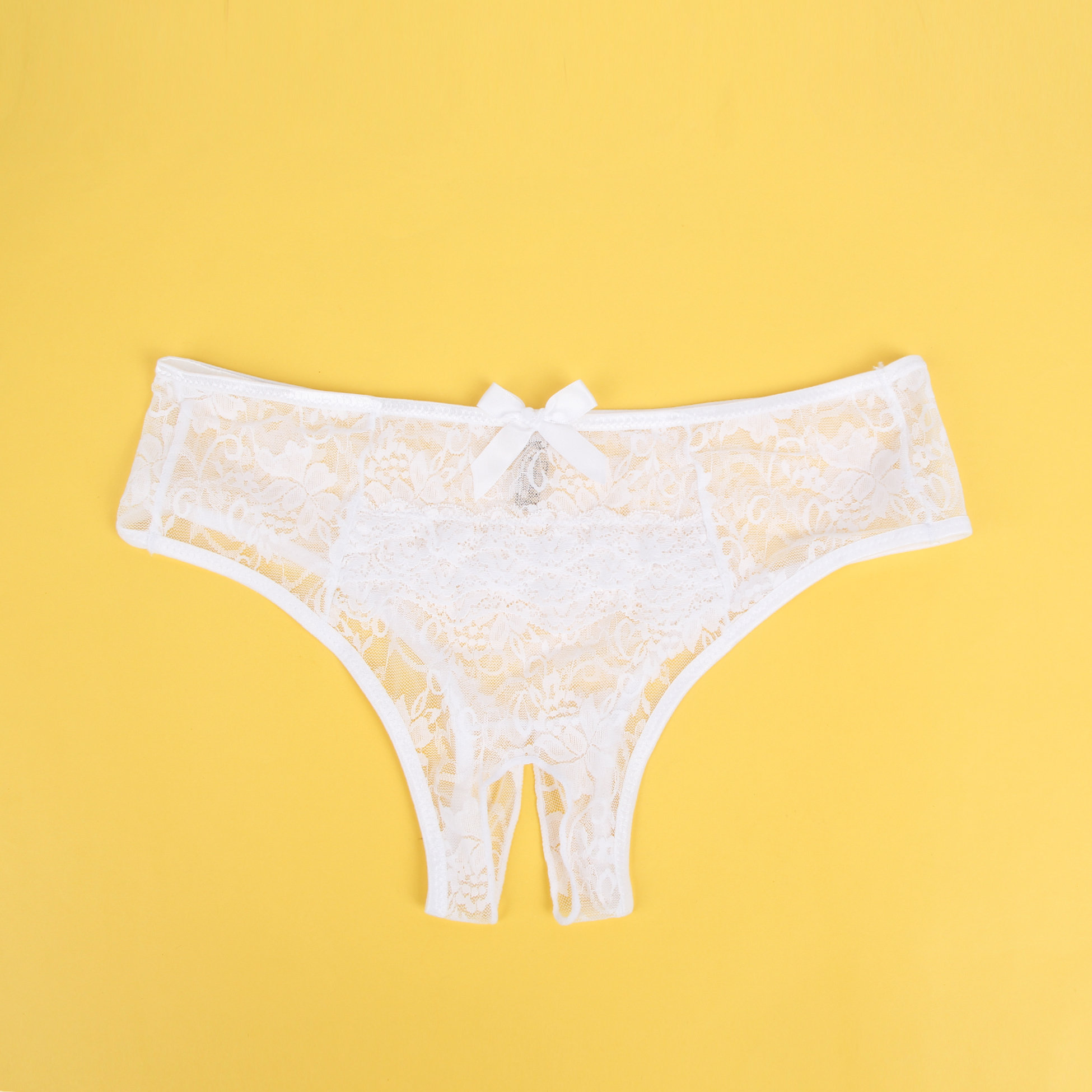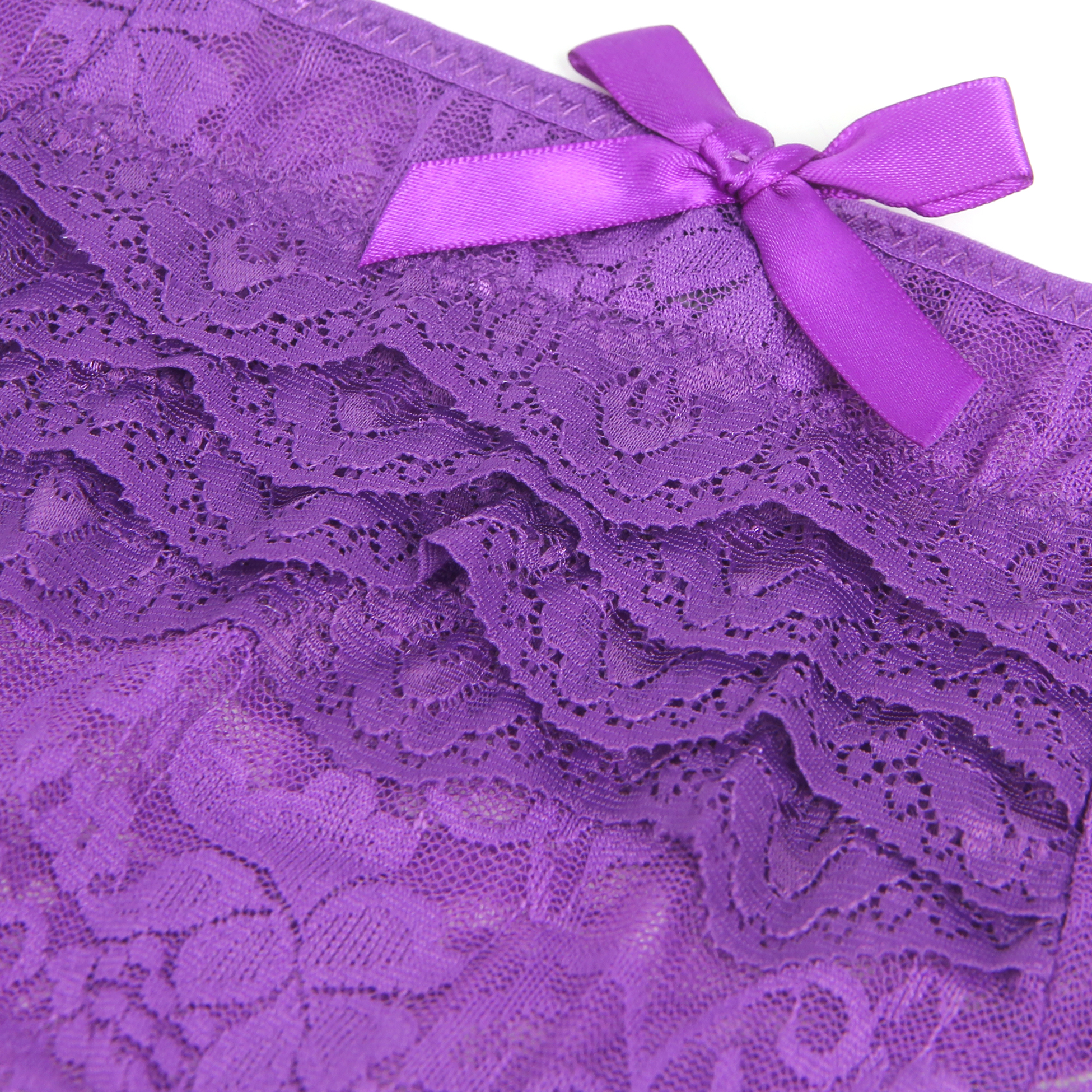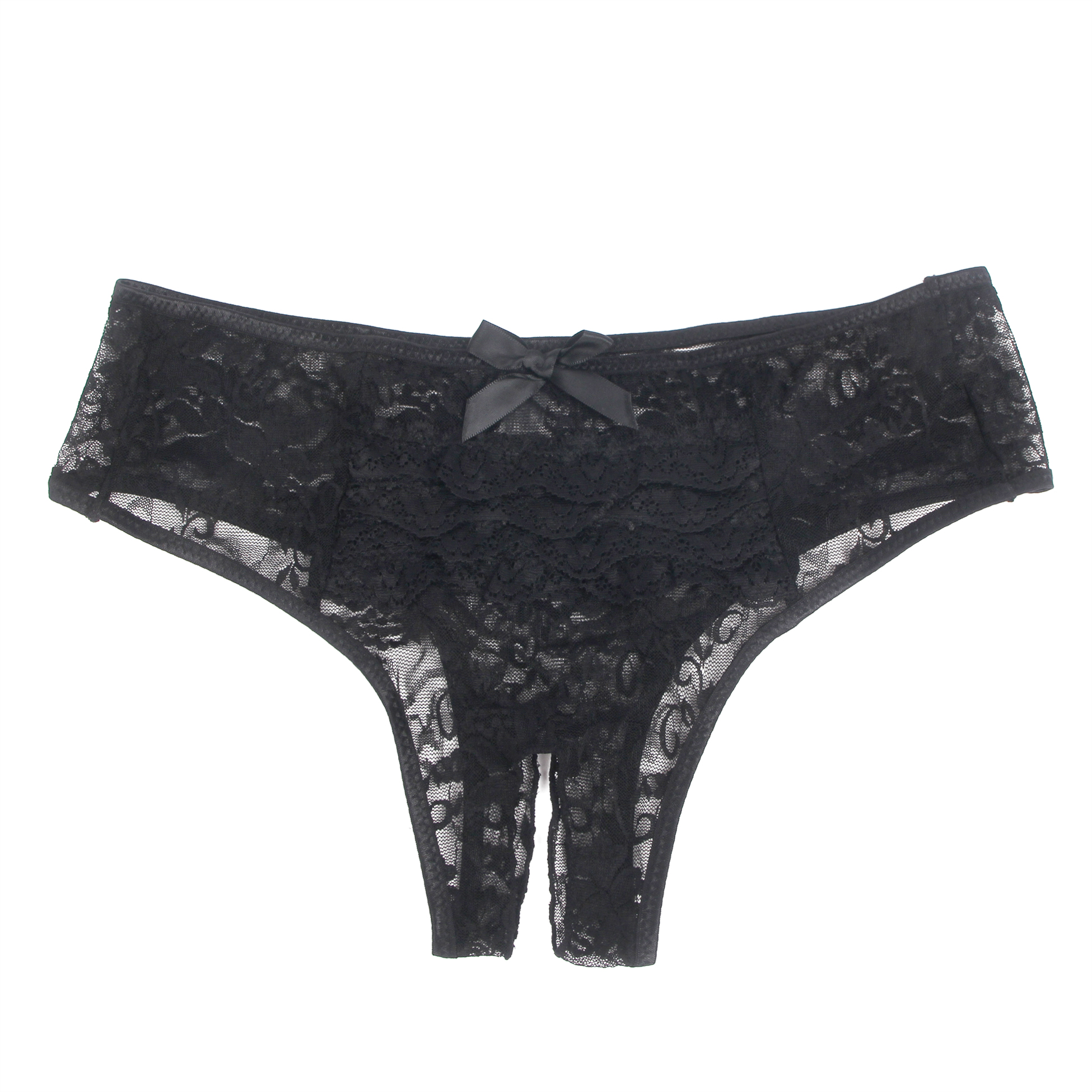 Mooie kanten slips met meerlaagse kanten rand aan de achterkant voor een driedimensionale en unieke look.Een strikversiering aan de achterkant voegt een speelse en schattige touch toe.De slips hebben een open kruisje, uitdagend maar toch verleidelijk.