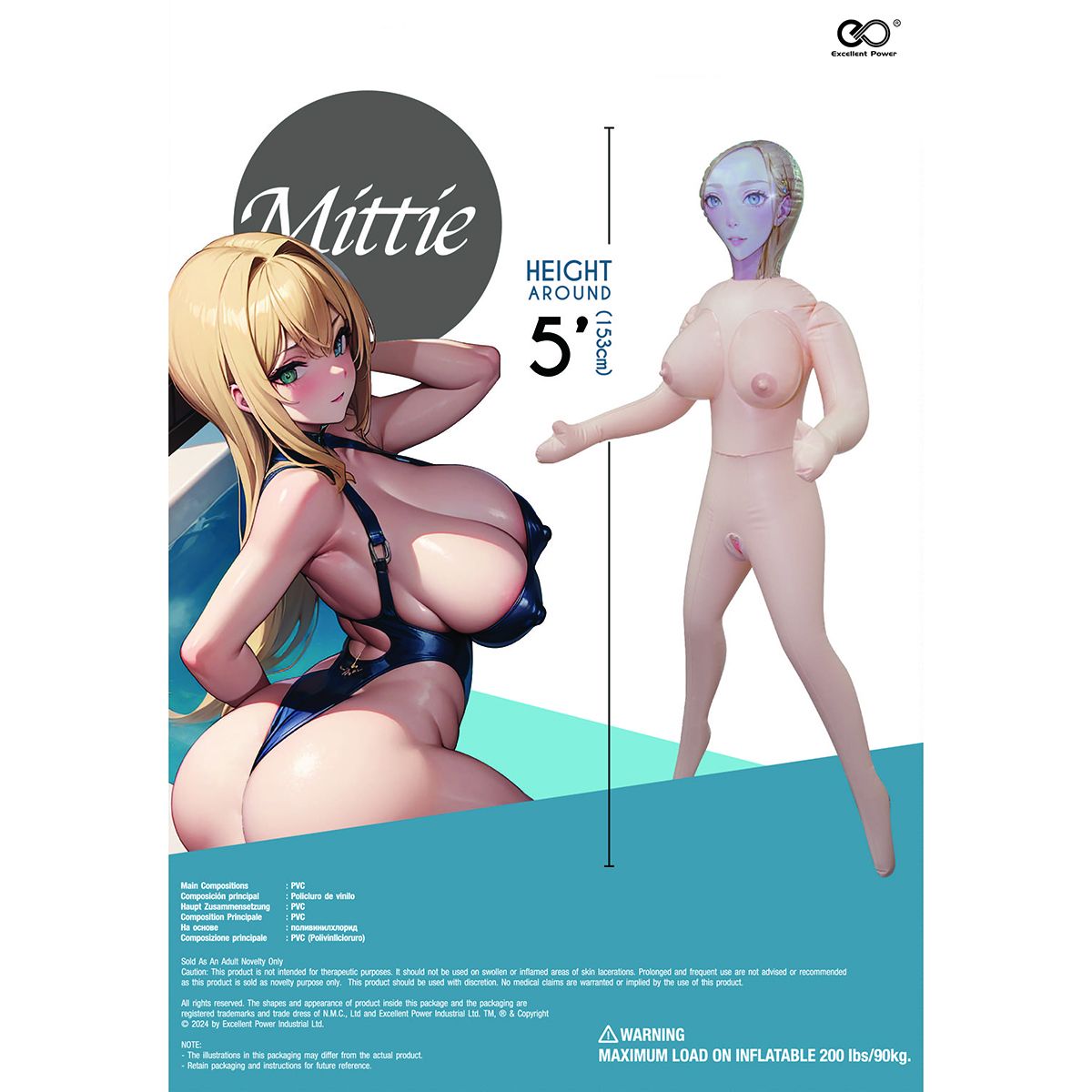 - Ontwerpkenmerken: Staande houding met open zelfverzekerde armen, grote borsten, licht PVC-ontwerp